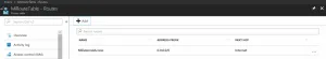 Vá para o portal do Azure, adicione um novo recurso “Tabela de rotas” e, uma vez criado para o painel Rotas, adicione uma rota “rota da Internet 0.0.0.0/0 Next Hop”. Essa rota permitirá que as Instâncias Gerenciadas colocadas na sua Rede Virtual se comuniquem com o Serviço de Gerenciamento do Azure que gerencia a instância. Sem isso, a Instância gerenciada não pode ser implantada.