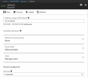 - A rede virtual deve ter pontos de extremidade de serviço desativados.